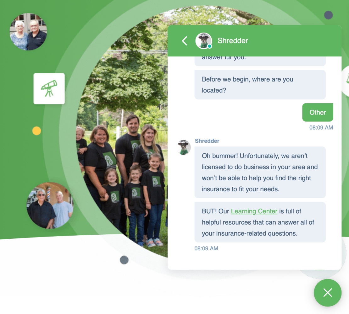 IMPACT client Berry Insurance is seeing great success with their fun and unique chatbot featuring the company mascot, “Shredder.”
