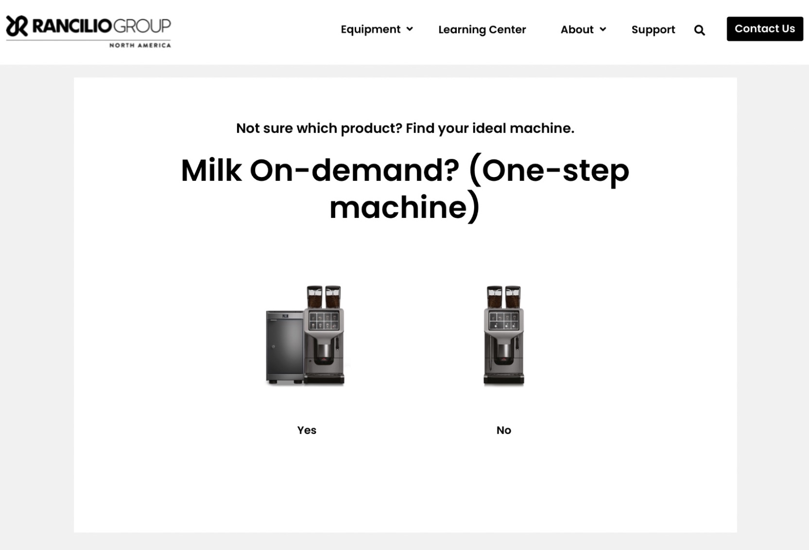 - It gives prospects who might not know the extent of Rancilio's products an easy, engaging way to shop.
